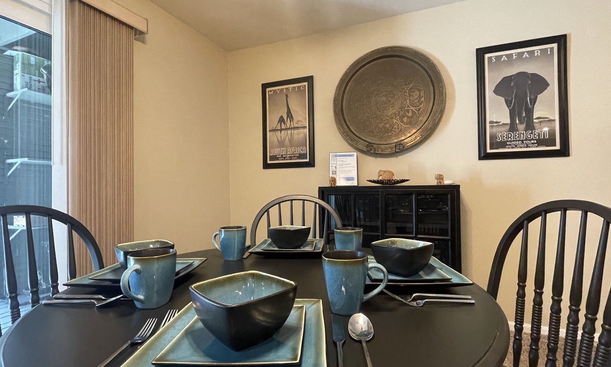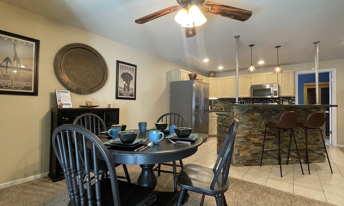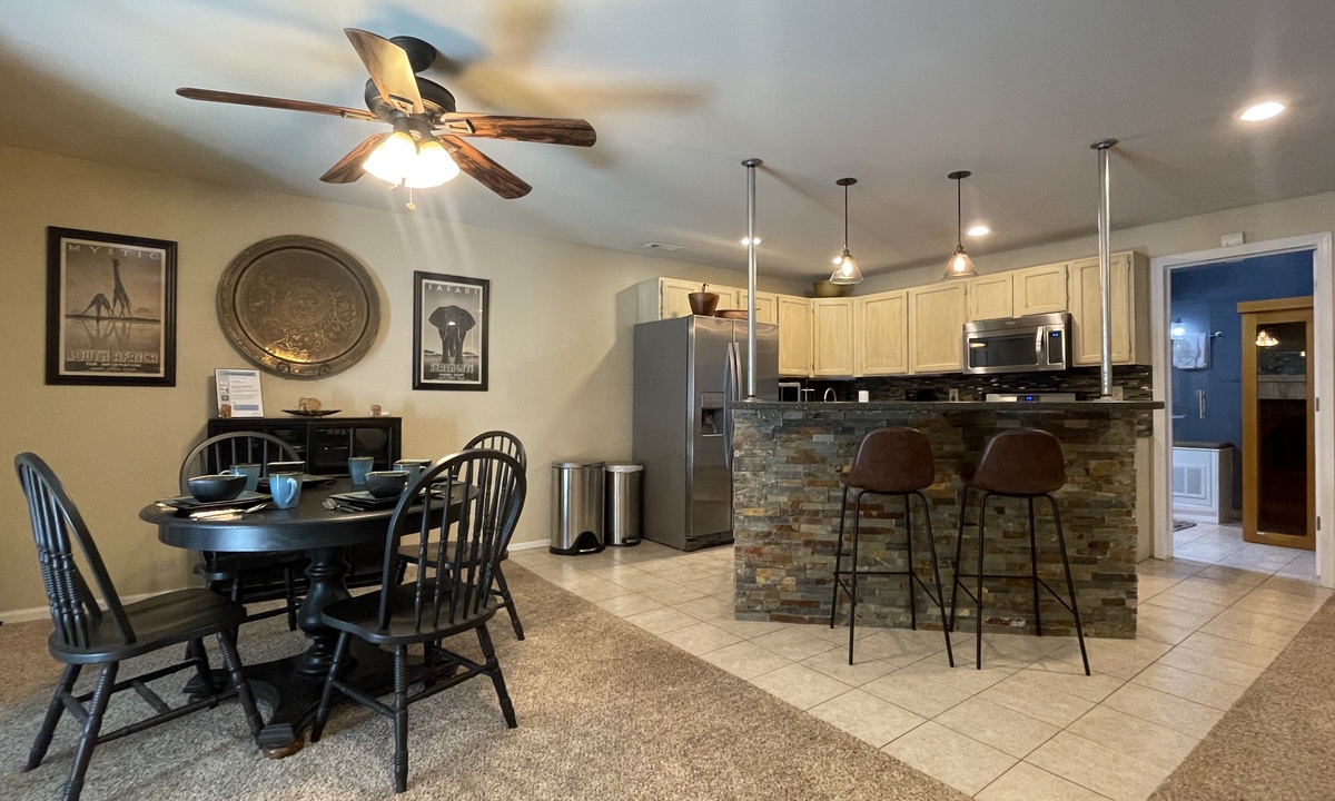 INDOOR LIVING: 55" Smart TV, dining table with seating for 4, board games and books, ceiling fans, reading/lounge area