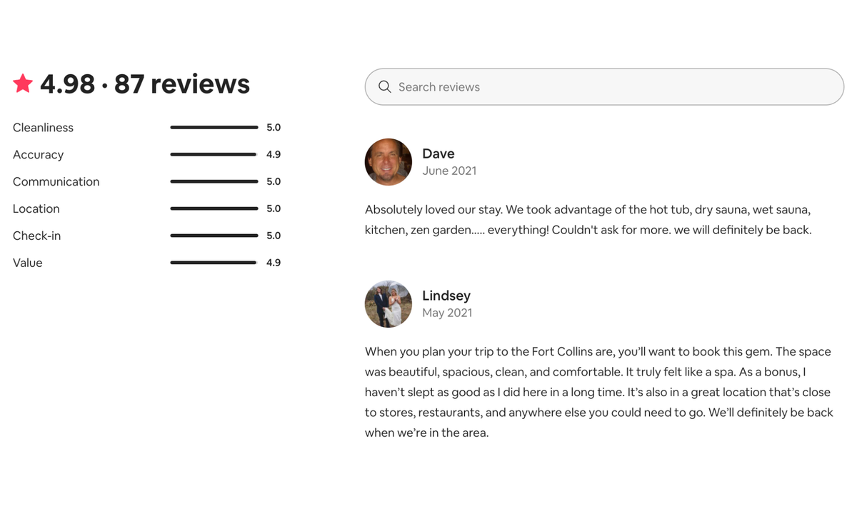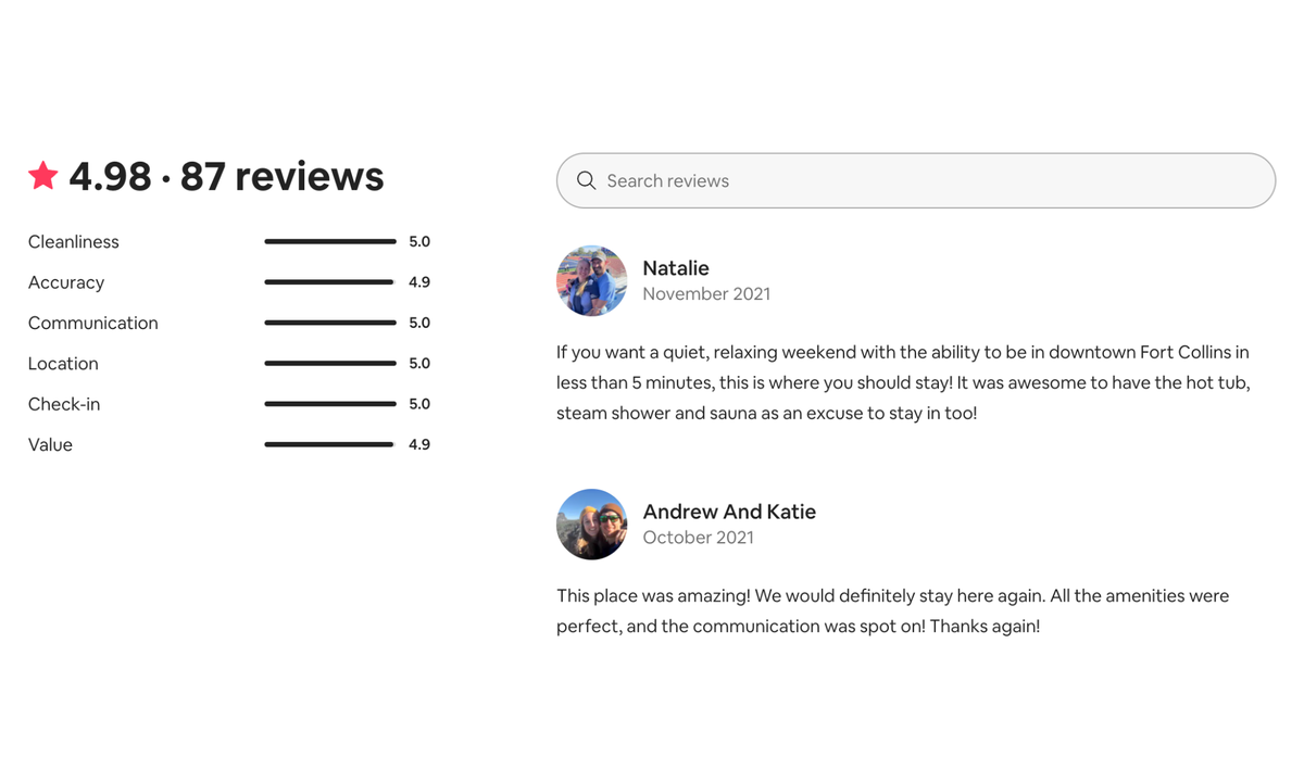 When you plan your trip to the Fort Collins are, you’ll want to book this gem. The space was beautiful, spacious, clean, and comfortable. It truly felt like a spa. As a bonus, I haven’t slept as good as I did here in a long time. It’s also in a great location that’s close to stores, restaurants, and anywhere else you could need to go. We’ll definitely be back when we’re in the area.