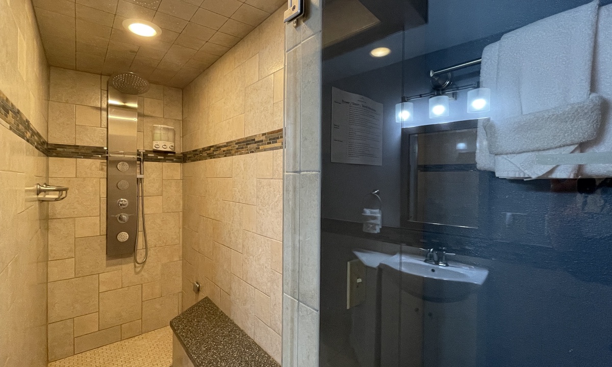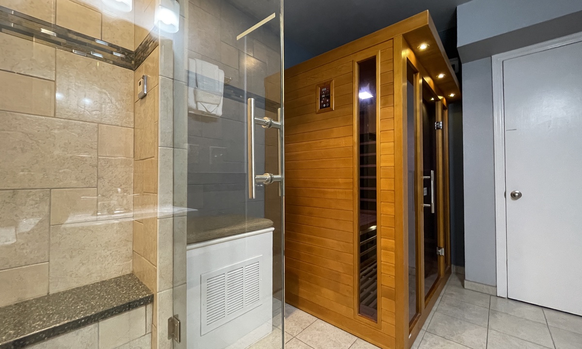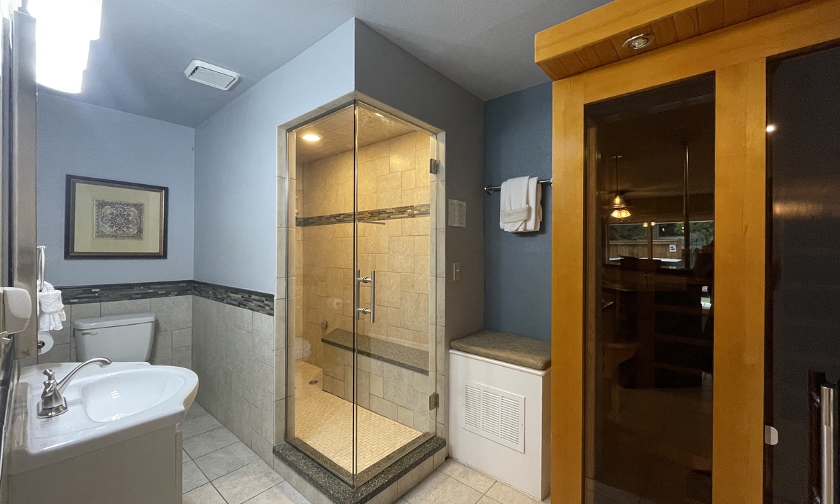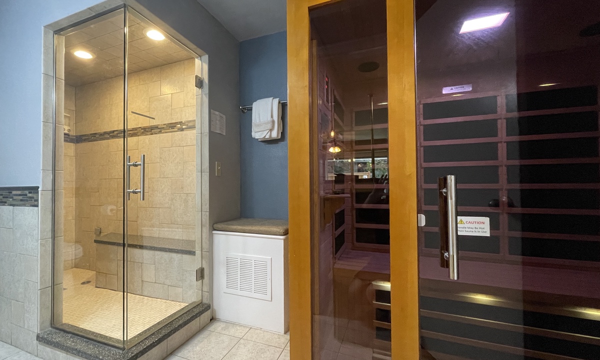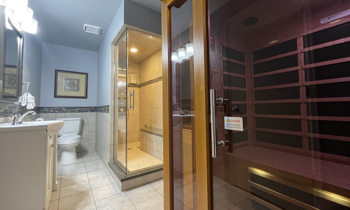 BATHROOMS: Luxury bathroom suite with steam room shower and infrared dry sauna with custom lighting and speakers; hairdryer, linens/towels, iron/ironing board. We even include local favorites for every guest stay including soaps, shampoo, and conditioner.