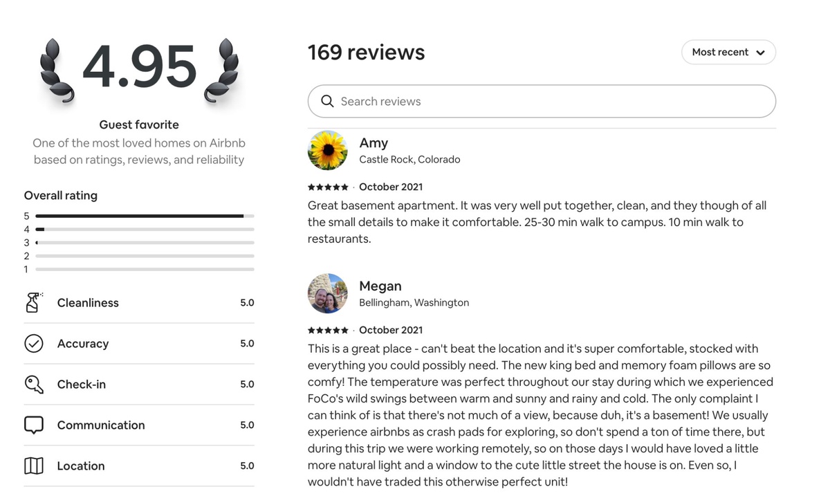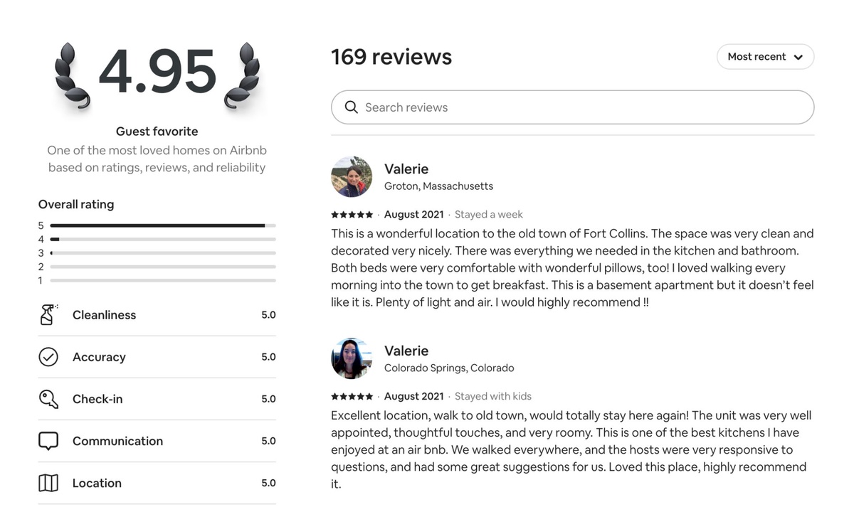 Location within easy walking distance to downtown shops and restaurants. Very nice neighborhood, plenty of parking. Day trips to Red Rocks, Rocky Mountain National Park, Idaho Springs and Mount Blue Sky. Took advantage of discount for e-bike rental and spent hours on the city bike paths and Poudre River trail.- Robert D from Virginia Beach, Posted: 08/08/2024