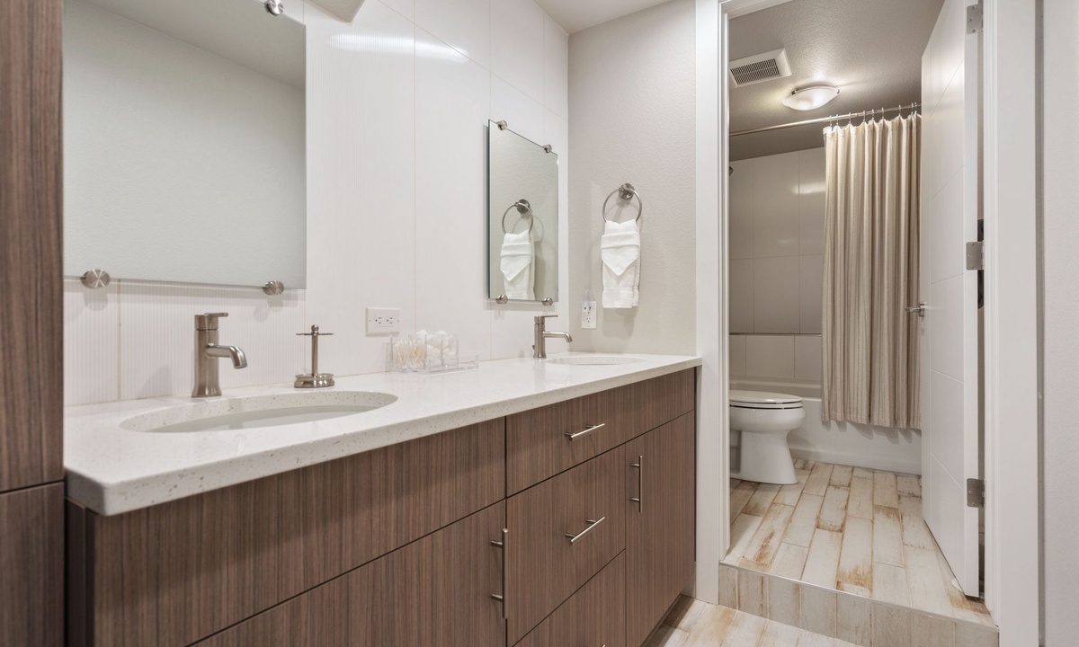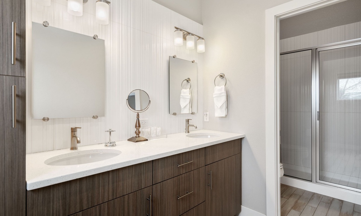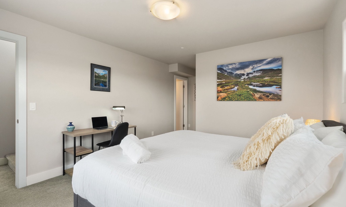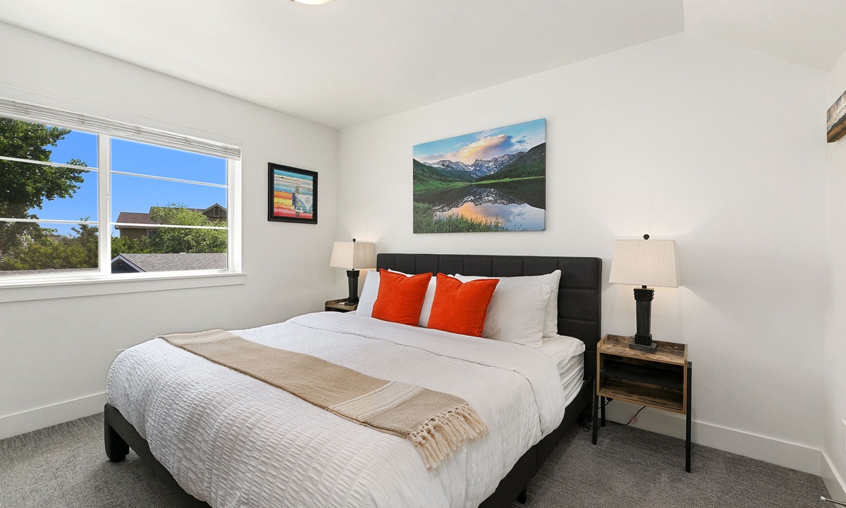 Bedroom 1: King Bed with Ensuite Bathroom (second level) | Bedroom 2: Queen Bed with Ensuite Bathroom (second level) | Bedroom 3: Queen Bed with Ensuite Bathroom (third level) | Plus Queen-sized Sleeper Sofa (main level)
