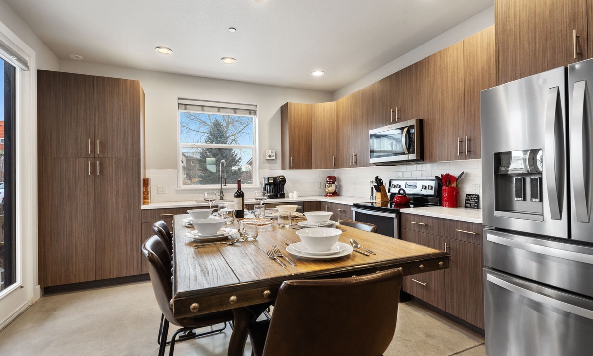 Ideal for large groups, this vacation rental features two side-by-side townhomes offering a total of 7 spacious bedrooms—including double king suites and loft-style sleeping areas—and 7 bathrooms. Guests will enjoy two fully equipped chef’s kitchens, inviting fireplaces, and dedicated workspaces perfect for remote work. After a day of adventure in Old Town Fort Collins, unwind on the rooftop decks and take in the panoramic mountain views of the Rockies.