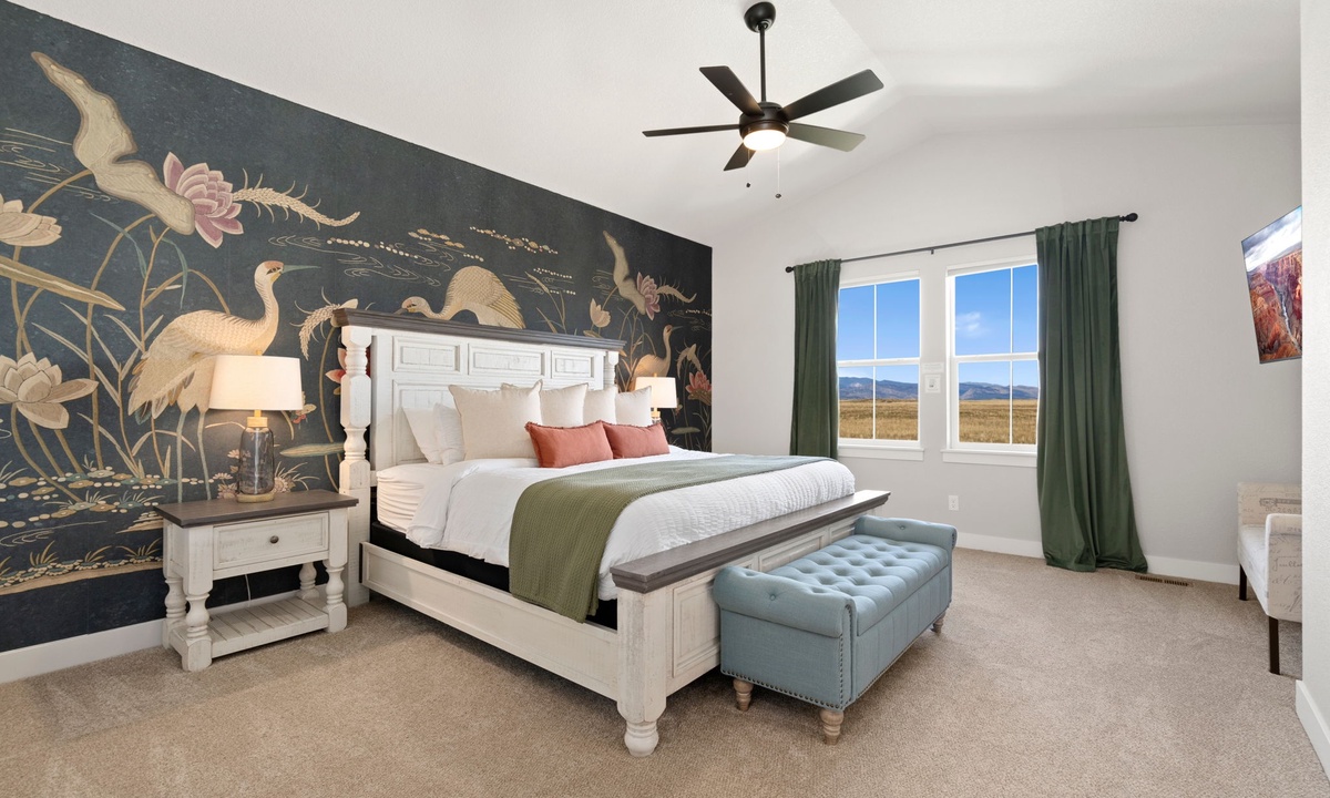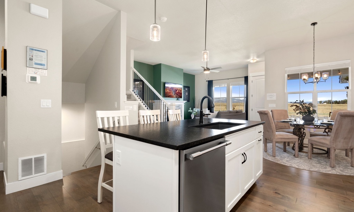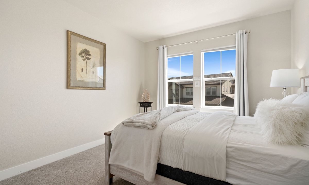 Experience stunning views of Longs Peak and the Rocky Mountains from this spacious 3-story townhome in the Heron Lakes golf community. Key features include a gas fireplace for cozy evenings, a 220-volt EV outlet, and a laptop-friendly workspace for remote work. With two living spaces, blackout curtains for restful sleep, and a sleek kitchen with stainless steel appliances and quartz countertops, this home offers a perfect blend of comfort and style.