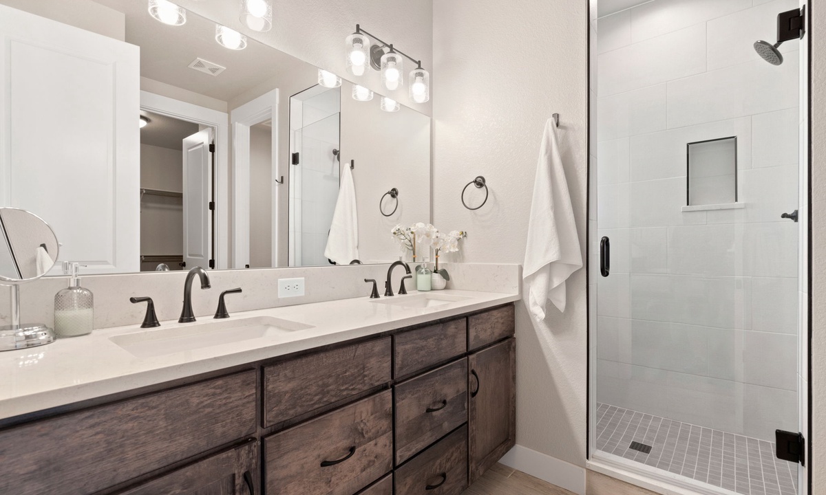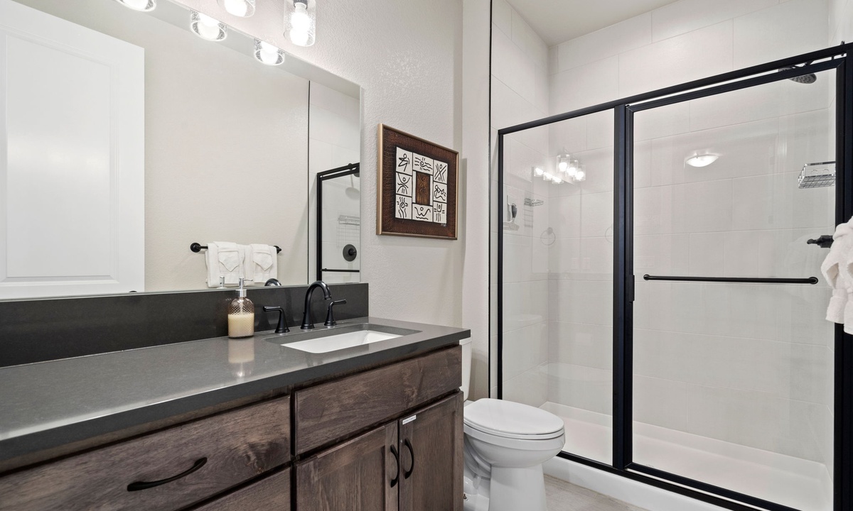 This home features: Bedroom 1: King Bed with Ensuite Bath (upper level) | Bedroom 2: Queen Bed (upper level) | Bedroom 3: Queen Bed (upper level) | Bedroom 4: Queen Bed (lower level) | Plus Sleeper Sofa (lower level) | Sleeps 10