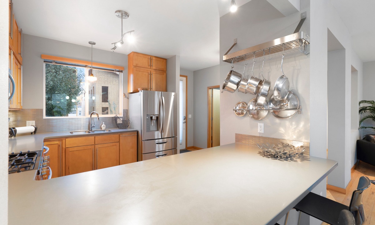 Spacious, comfy, well-appointed. This house was perfect for our extended weekend in Fort Collins for a birthday celebration. With 4 bedrooms, everyone in our party was able to have a private bedroom. The kitchen is large (perfect for the private chef one night), and the dining area more than enough plus the bar. The bonus basement area with large-screen tv and sectional was perfect! Access to the garage was awesome for the snowy weekend. We would have spent time on the rooftop patio with the chairs and the firepit except for the snow, however, the hot tub made up for it. The house is in a great location in a new neighborhood near New Belgium and not far from downtown.- Cary H from Colorado Springs, Posted: 02/03/2023