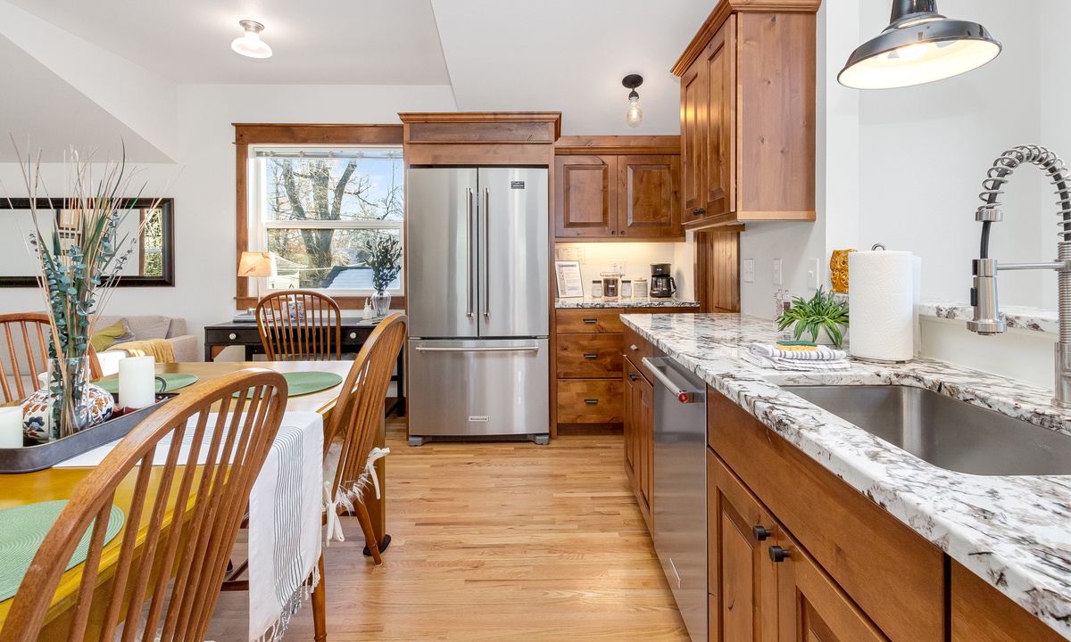 The Bear’s Den is wonderful! Every detail was thought of to make this apartment the perfect place to stay in Fort Collins. It’s located above the garage of a private home in a very quiet neighborhood. There is a parking spot dedicated to the rental just outside the door, but you do not need a car as it is walking distance to Colorado State University and downtown Fort Collins with all of it’s restaurants, coffee shops and cute boutiques. . The apartment has a beautiful kitchen with a full-sized refrigerator, dishwasher, microwave and coffee station. It doesn’t have a stove, but there is an outdoor grill and several delicious restaurants very nearby. We always rent directly from Mountain Time Rentals when we stay in Fort Collins. Their communication is excellent and their rentals are always clean and well-stocked to help you feel at home away from home.- Jill B from San Diego, Posted: 11/07/2024