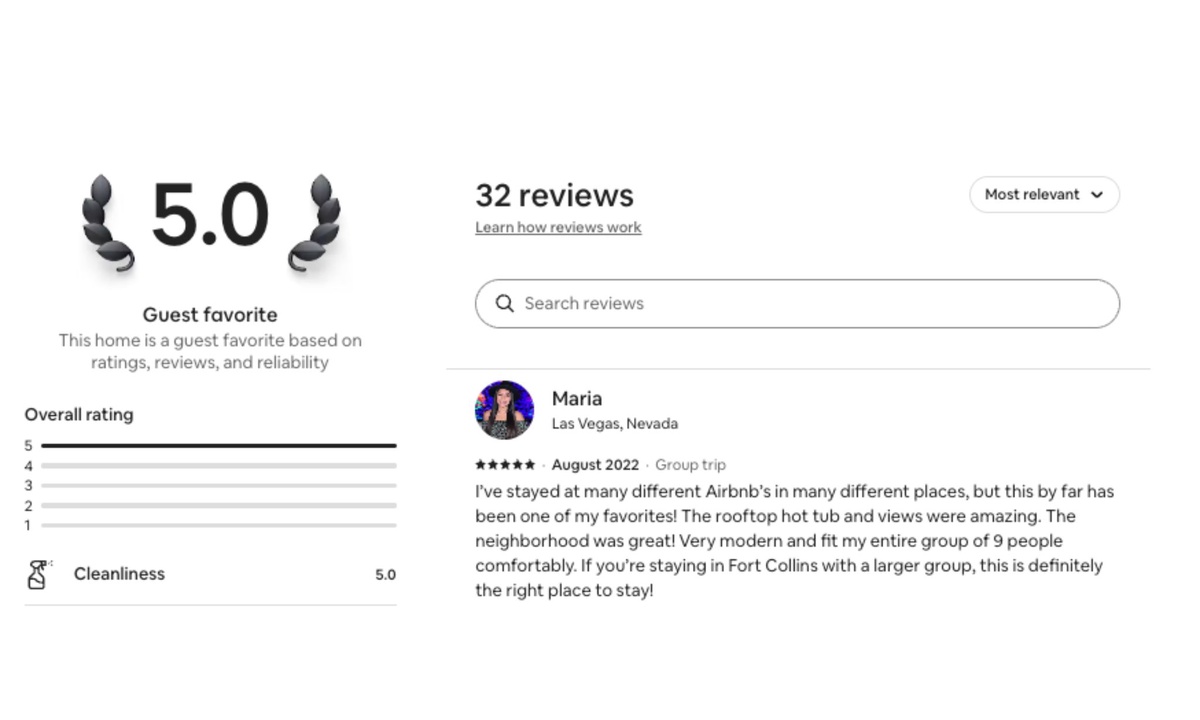 The rooftop hot tub and views were amazing. The neighborhood was great! Very modern and fit my entire group of 9 people comfortably. If you’re staying in Fort Collins with a larger group, this is definitely the right place to stay!