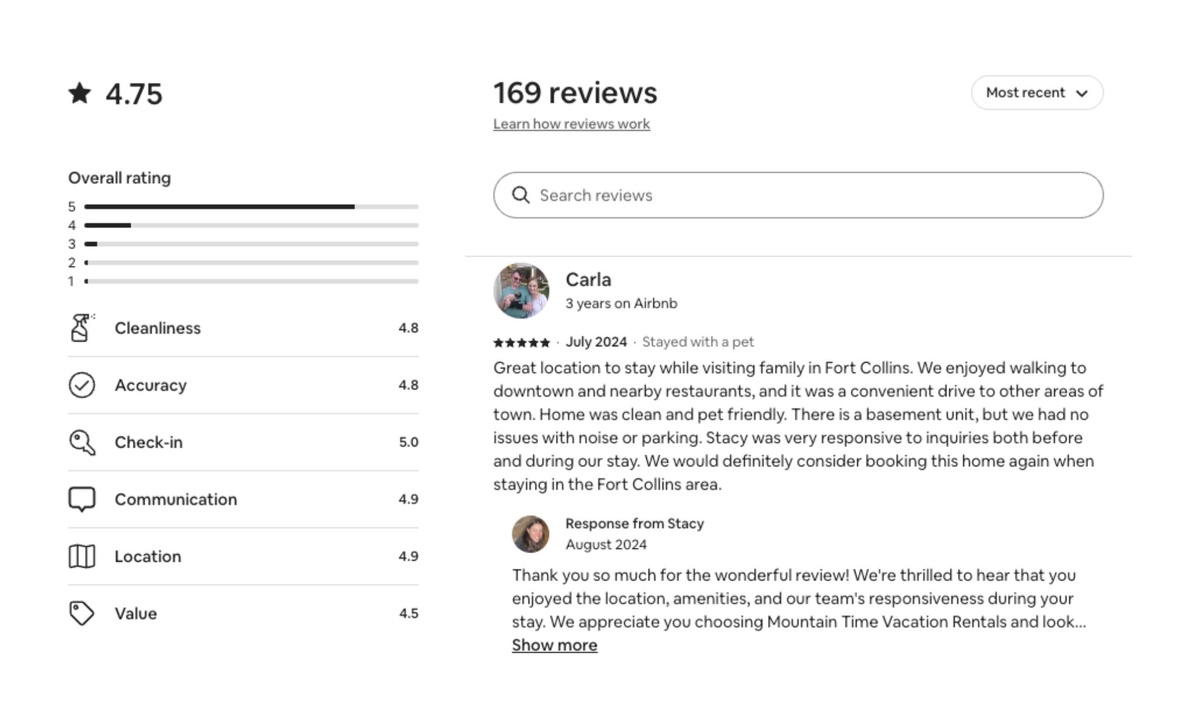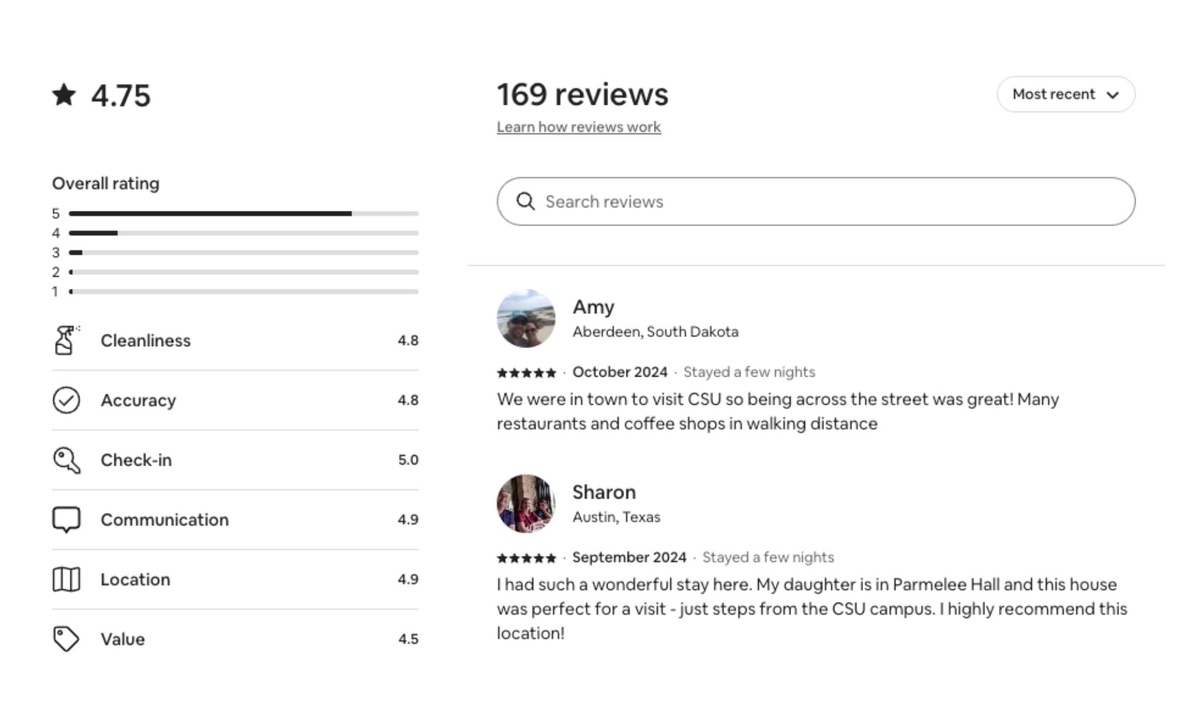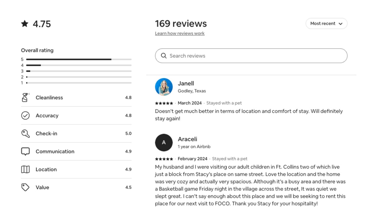 Located in a convenient neighborhood, clean, quick access to the vibrant parts of Ft. Collins. Pet friendly, communicative hosts. Thanks so much!