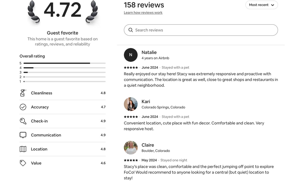Stacy’s place was clean, comfortable and the perfect jumping off point to explore FoCo! Would recommend to anyone looking for a central (but quiet) location to stay!