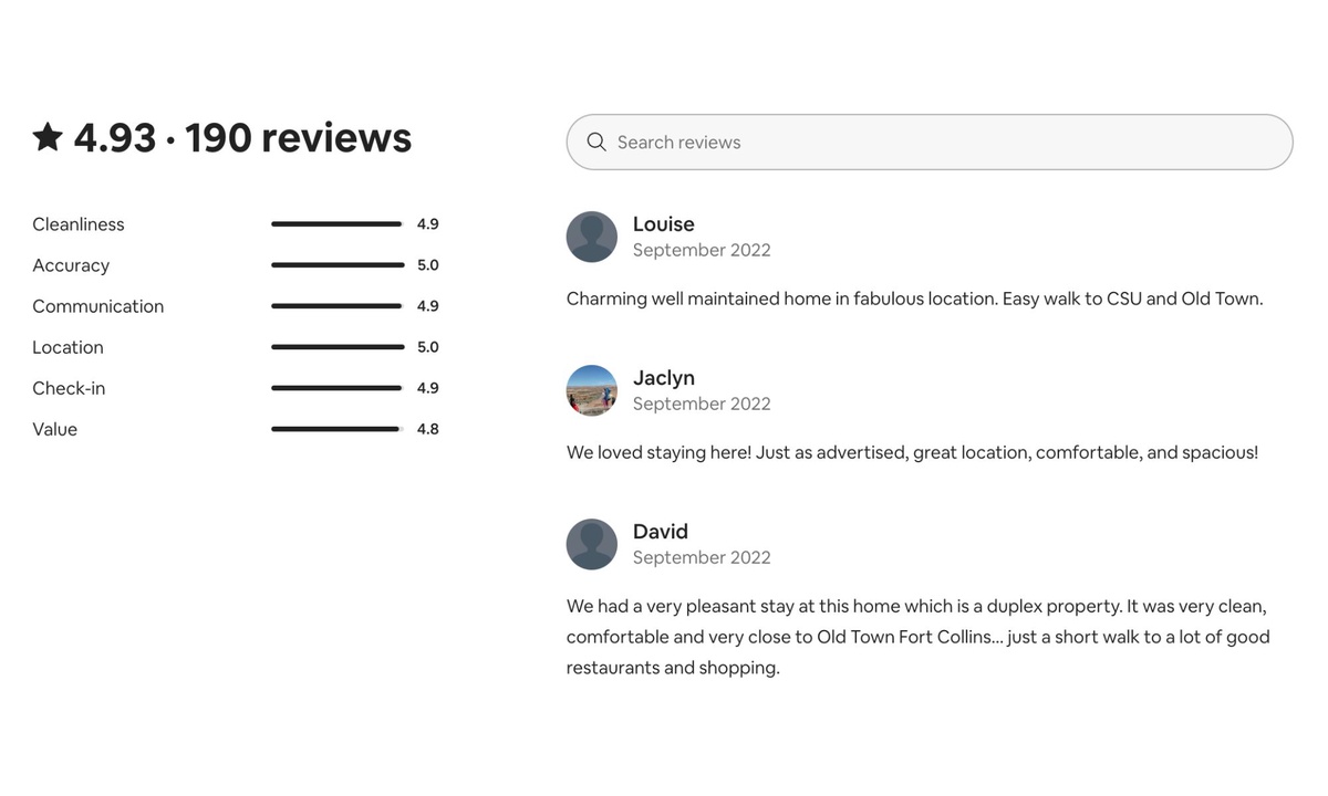 This place is in a perfect location to Old Town, CSU, and easy access to go wherever you'd like. Very quiet neighborhood. The central A/C was wonderful to have in the heat. Easy check-in/out. Highly recommend.- Lance S from Waukesha, WI, Posted: 08/18/2025